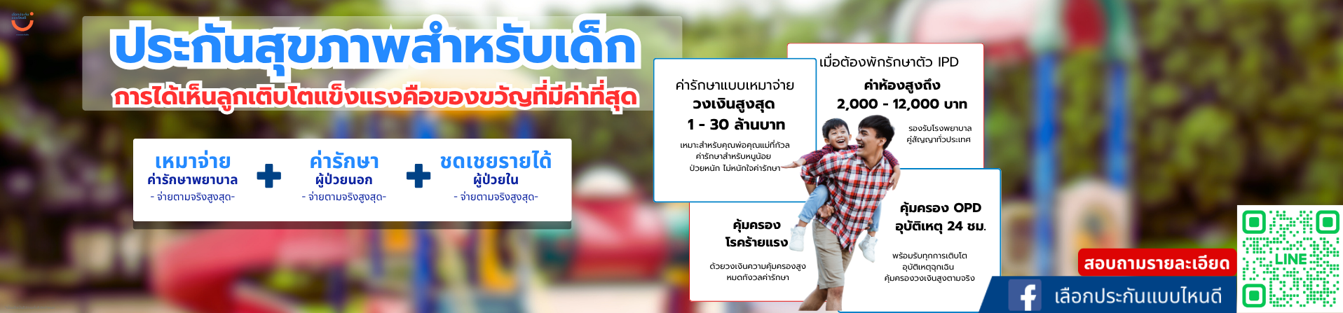 ประกันสุขภาพเด็ก เหมาจ่าย คุ้มครองทั้งนอนและไม่นอน